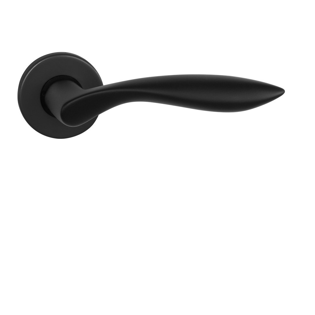 Rozetová klika na interiérové dveře s kulatou rozetou je vyrobena z hliníku a je povrchově upravena. Rozeta má průměr 50 mm a tloušťku 7 mm. Klika neobsahuje vratný mechanismus kliky – pružinu a mechanika kliky je uložená v plastovém pouzdře.