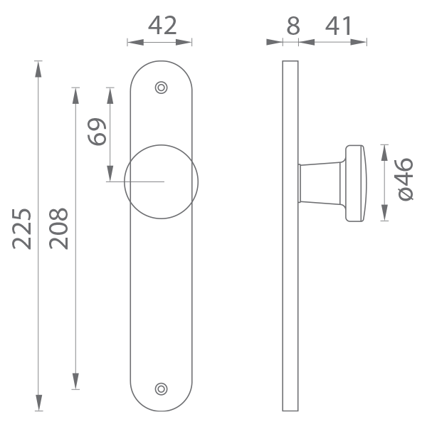 Dveřní pevná přímá koule na oválném štítu je vyrobena z hliníku a je povrchově upravena.