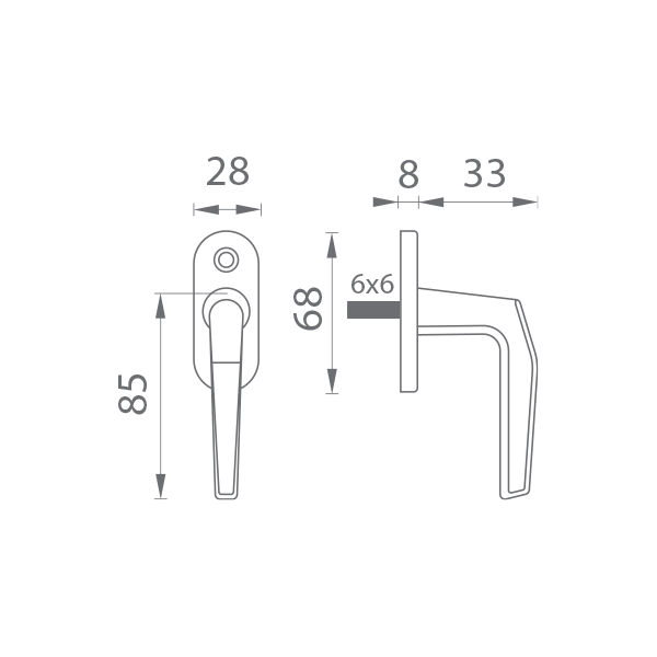 Půloliva na dřevěné okno s oválnou rozetou je vyrobená z hliníku a je povrchově upravená. Rozeta má rozměry 28 mm x 68 mm a tloušťku 8 mm.