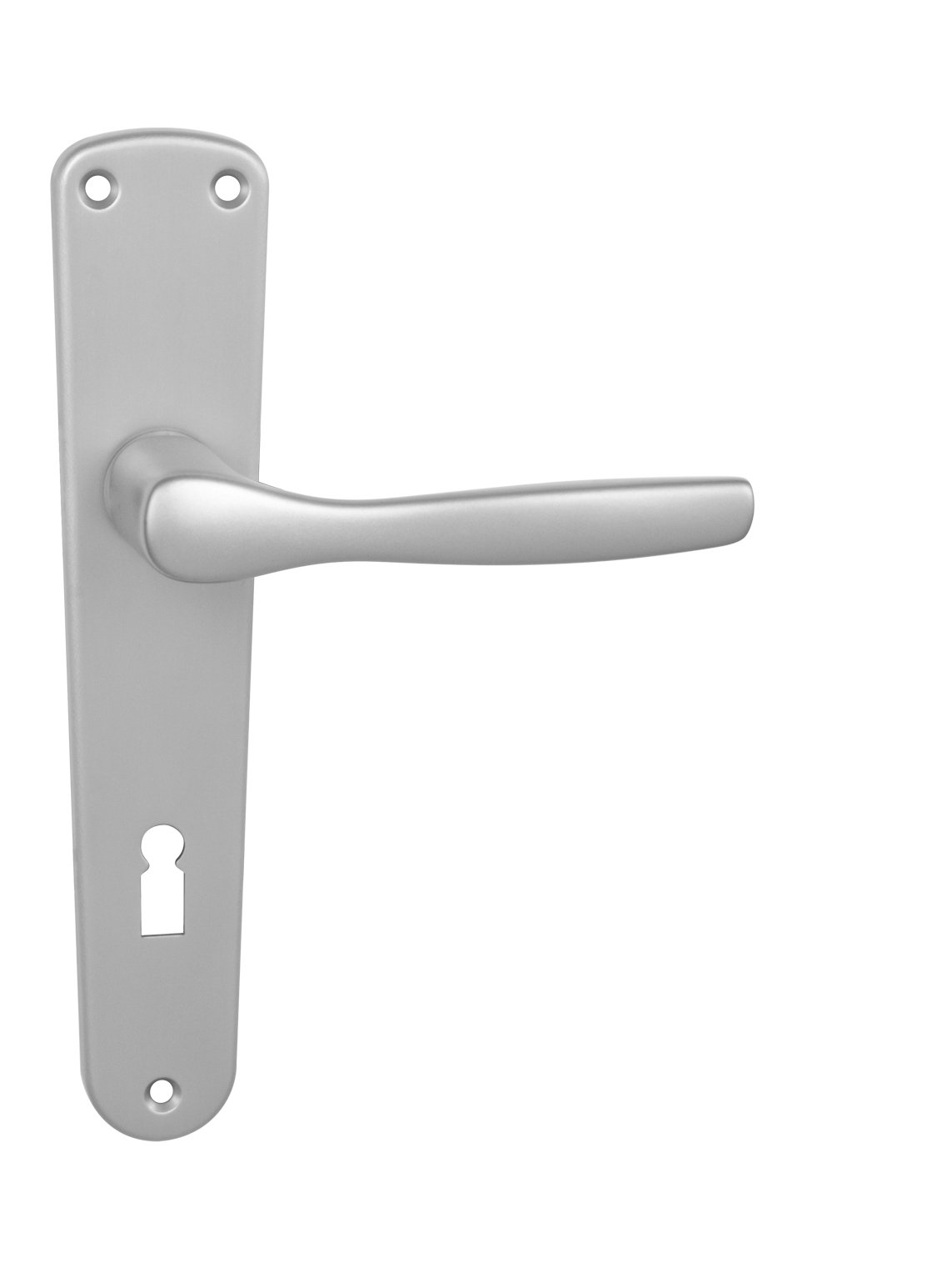 Štítová klika na interiérové dveře s oválným štítem je vyrobena z hliníku a je povrchově upravena. Oválný štít má rozměry 42 mm x 206 mm a klika neobsahuje vratný mechanismus.