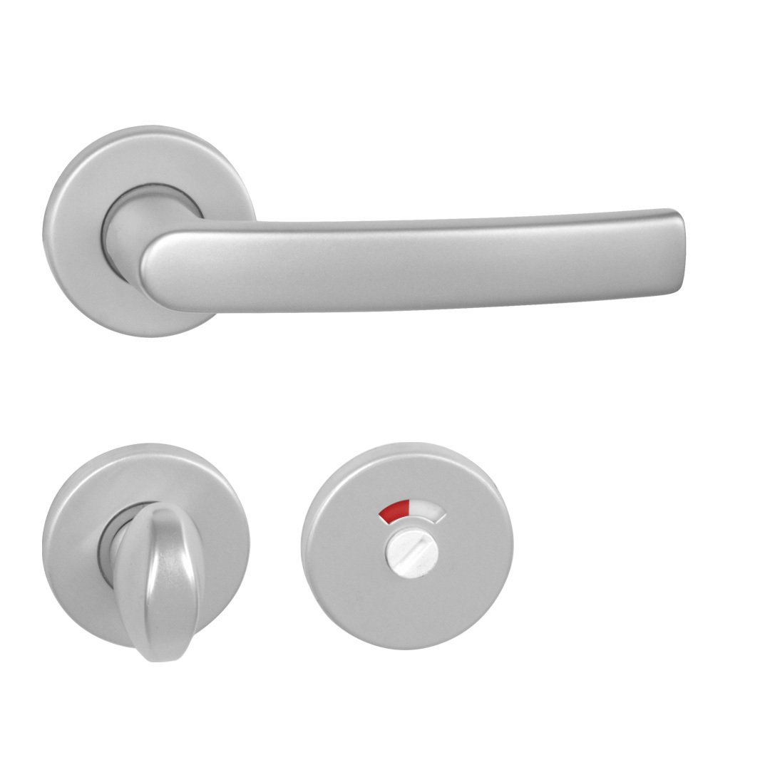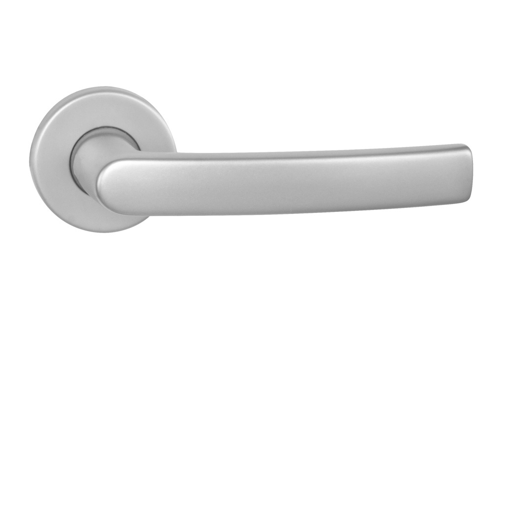 Rozetová klika na interiérové dveře s kulatou rozetou je vyrobena z hliníku a je povrchově upravena. Rozeta má průměr 50 mm a tloušťku 7 mm. Klika neobsahuje vratný mechanismus kliky – pružinu a mechanika kliky je uložena v plastovém pouzdře.