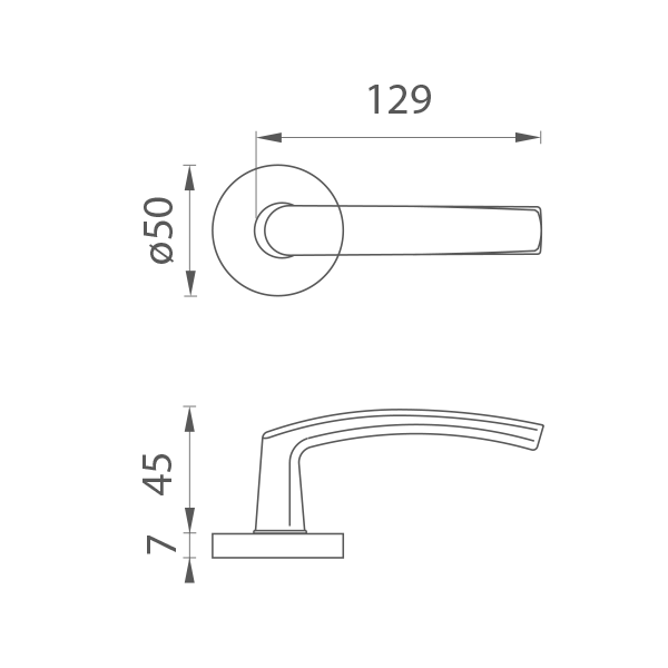 Rozetová klika na interiérové dveře s kulatou rozetou je vyrobena z hliníku a je povrchově upravena. Rozeta má průměr 50 mm a tloušťku 7 mm. Klika neobsahuje vratný mechanismus kliky – pružinu a mechanika kliky je uložena v plastovém pouzdře.