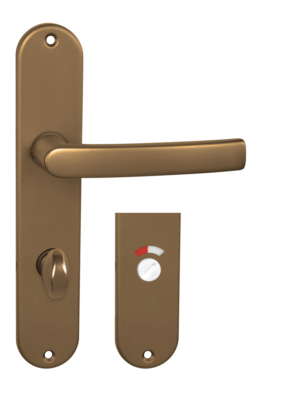 Štítová klika na interiérové dveře s oválným štítem je vyrobena z hliníku a je povrchově upravena. Oválný štít má rozměry 40 mm x 225 mm a klika neobsahuje vratný mechanismus.