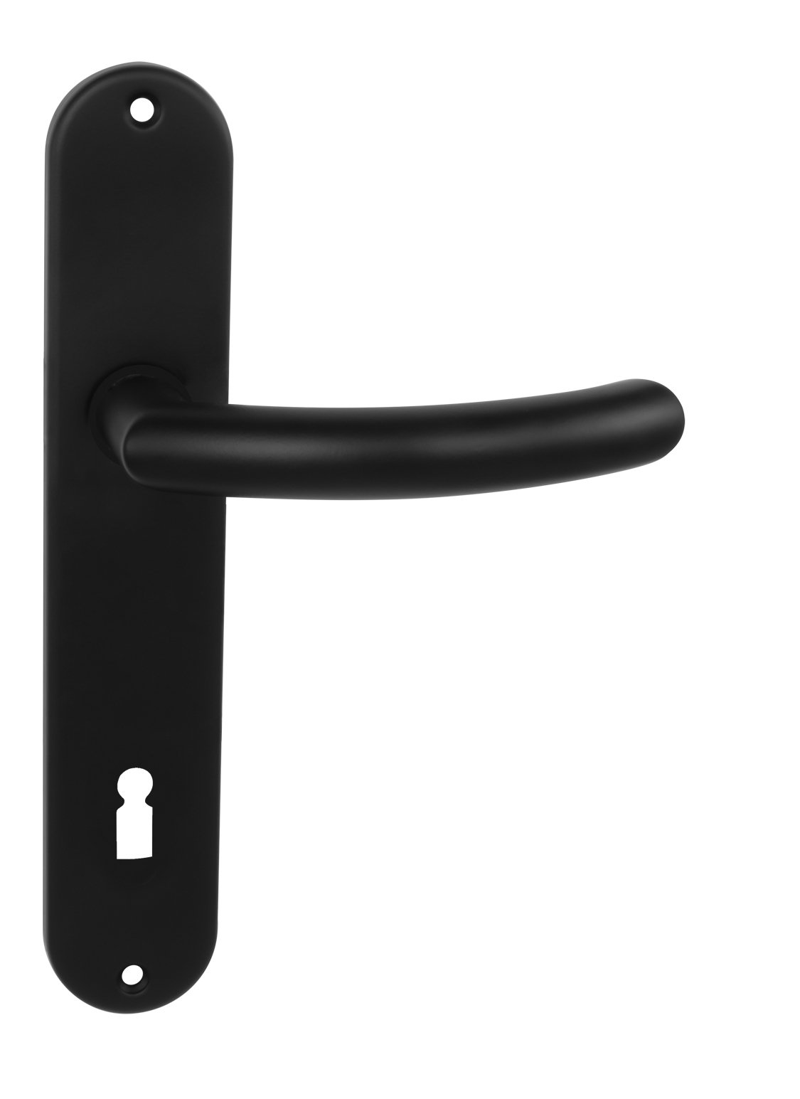 Štítová klika na interiérové dveře s oválným štítem je vyrobená z hliníku a je povrchově upravená. Oválný štít má rozměry 42 mm x 206 mm a klika neobsahuje vratný mechanismus.