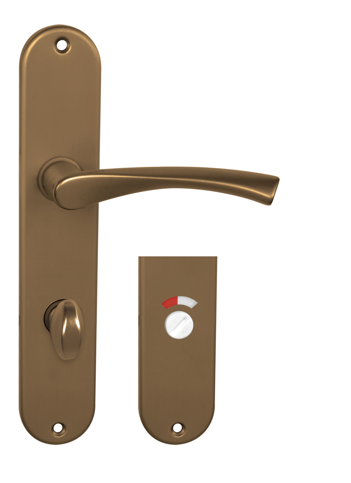 Štítová klika na interiérové ​​dveře s oválným štítem je vyrobena z hliníku a je povrchově upravena. Oválný štít má rozměry 40 mm x 225 mm a klika neobsahuje vratný mechanismus.
