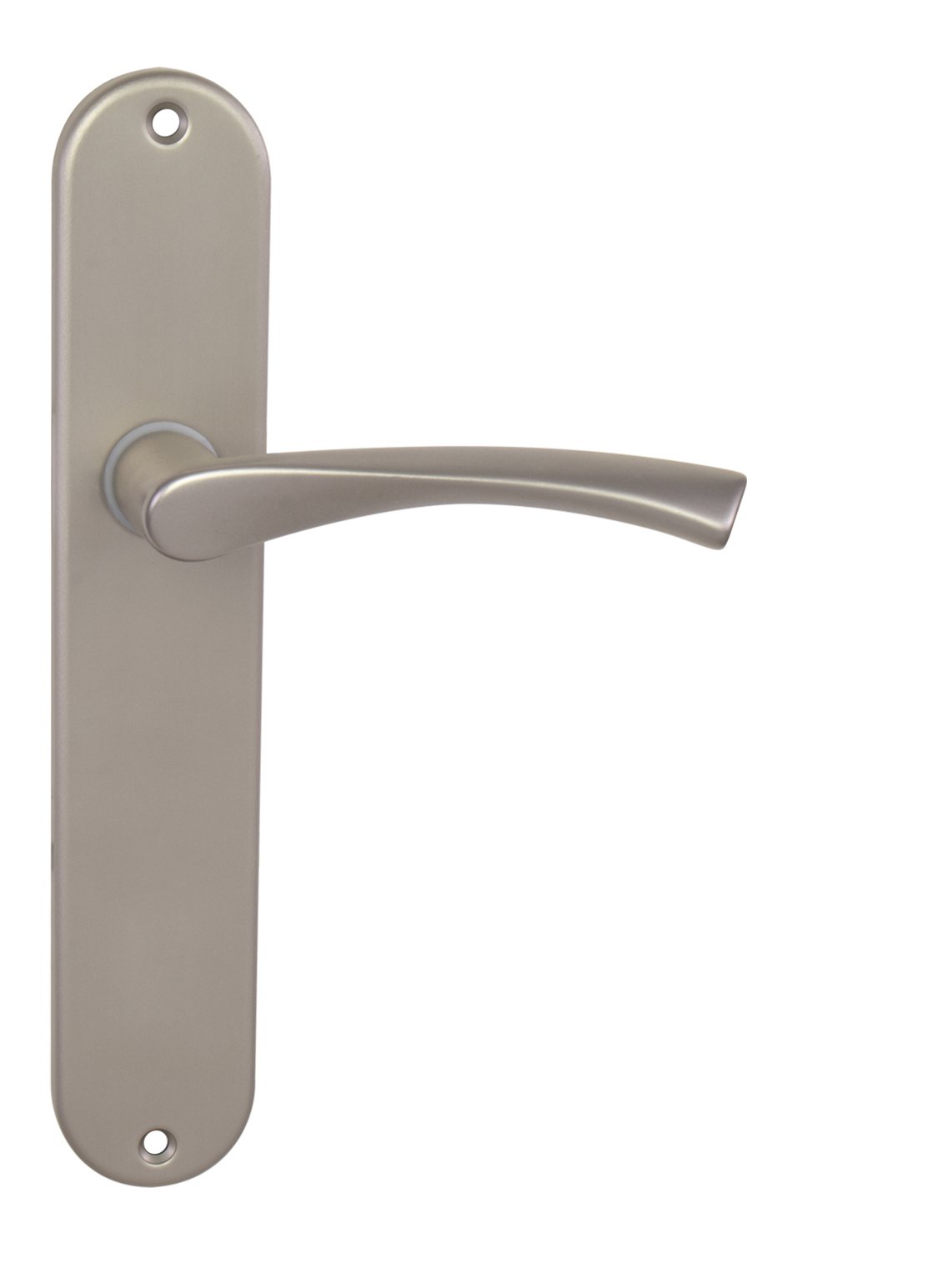Štítová klika na interiérové ​​dveře s oválným štítem je vyrobena z hliníku a je povrchově upravena. Oválný štít má rozměry 40 mm x 225 mm a klika neobsahuje vratný mechanismus.