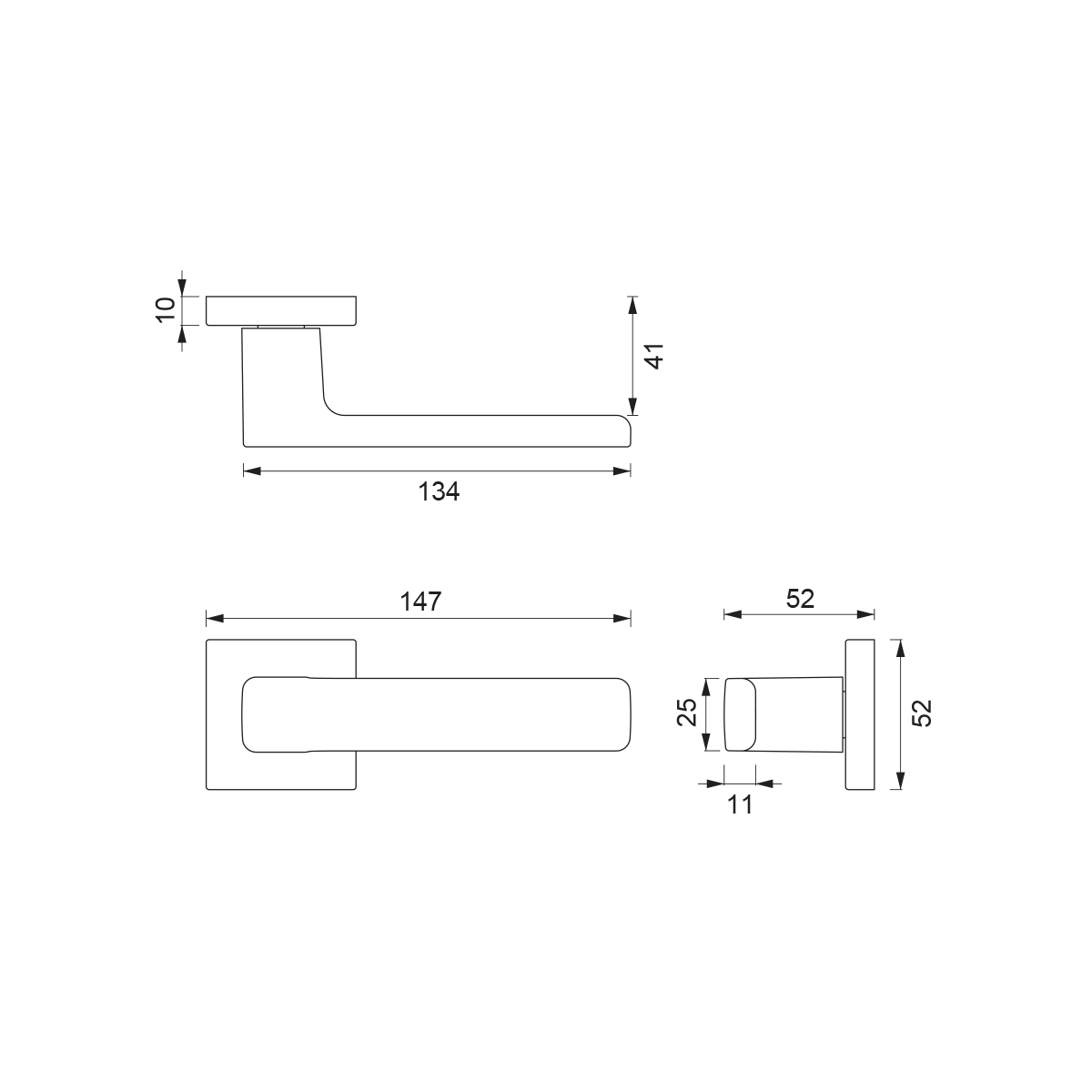 Rozetová klika FLAT na interiérové dveře s hranatou rozetou je vyrobená z kvalitního tvrzeného polyamidu. Rozeta má rozměr 52x52 mm a tloušťku jen 10 mm.