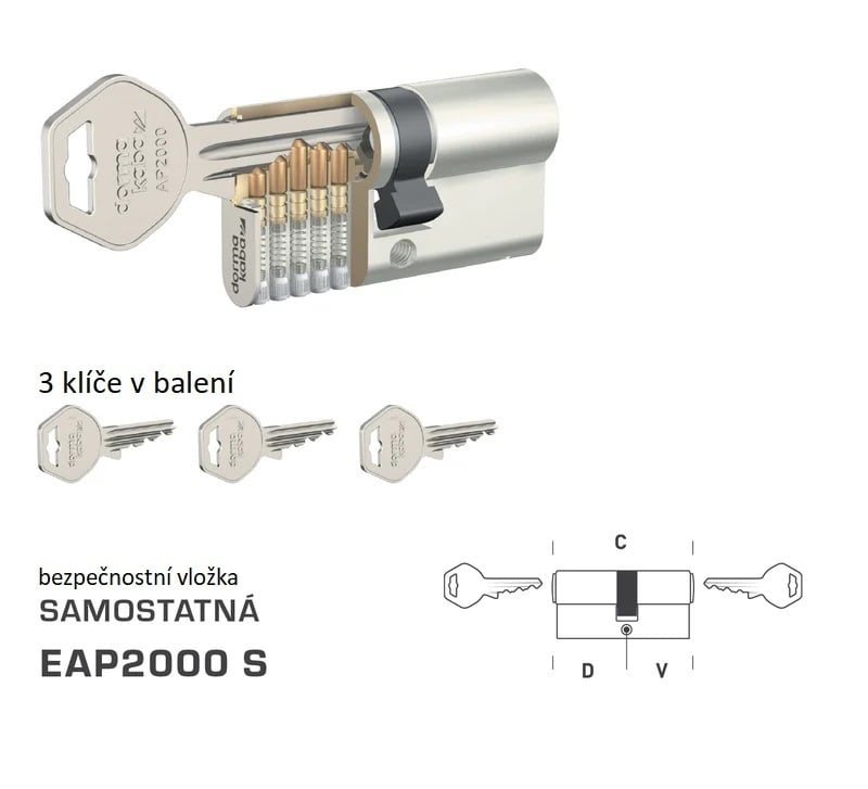 EAP2000 S je samostatná bezpečnostní vložka s možností sjednocení více vložek na společný klíč.
