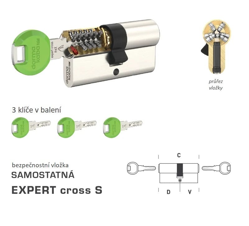 EXPERT cross S  je samostatná bezpečnostní vložka s možností sjednocení více vložek na společný klíč.
