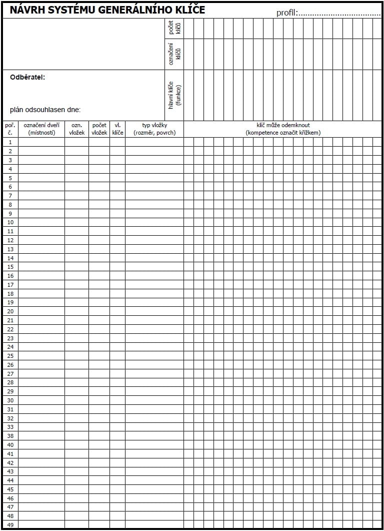 SYSTÉM GENERÁLNÍHO KLÍČE - UZAMYKACÍ SYSTÉM