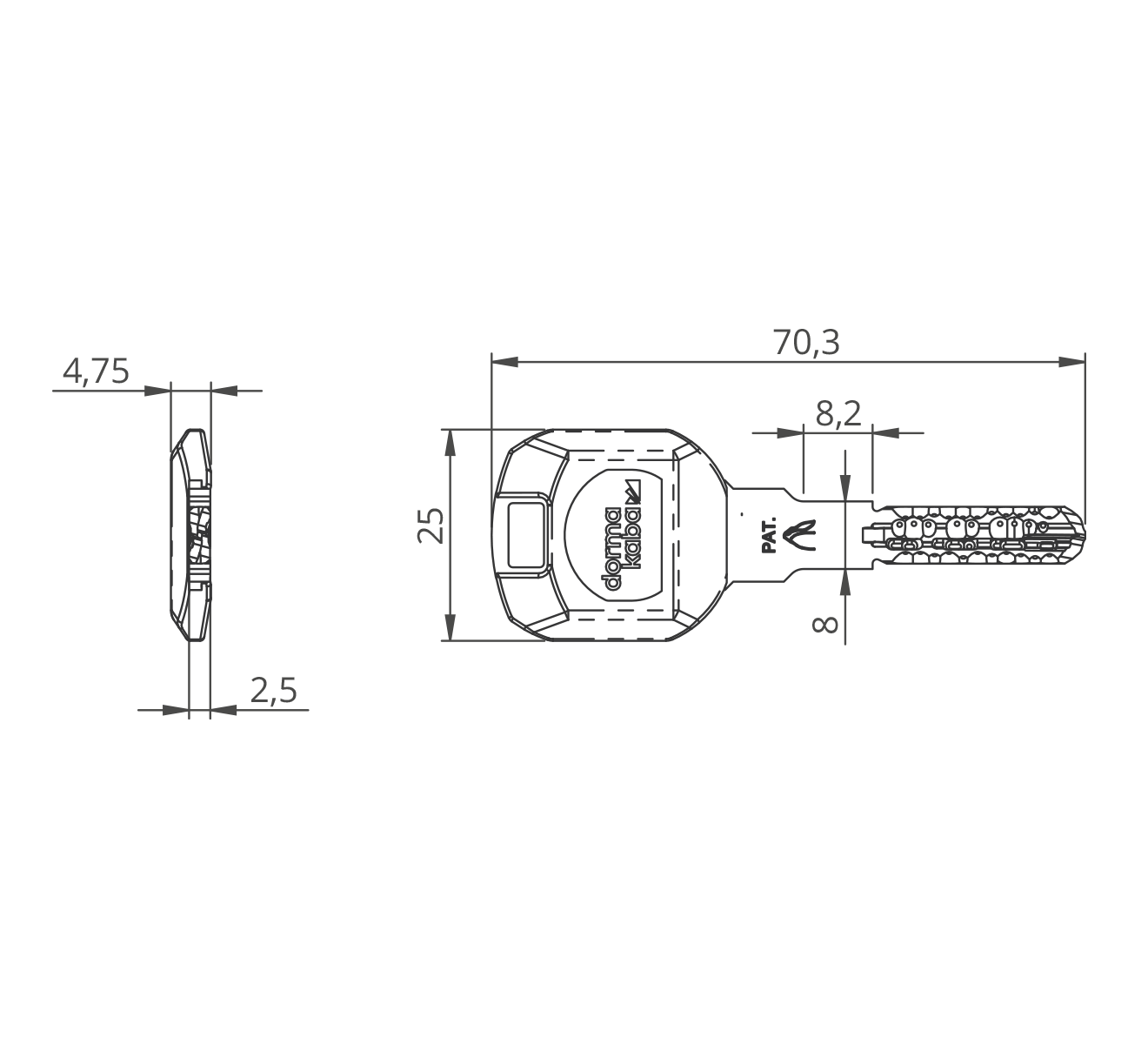 • Duplikát důlkového klíče je k dispozici jen na základě registrované bezpečnostní karty od autorizovaného prodejce dormakaba