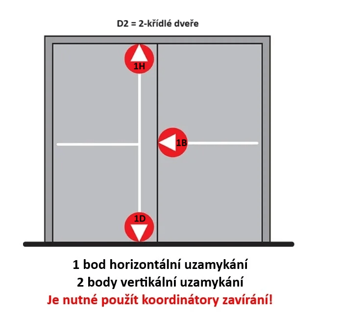 Je nutné použít koordinátor zavírání a samozavírač, je určeno pro protipožární a kouřotěsné dveře.