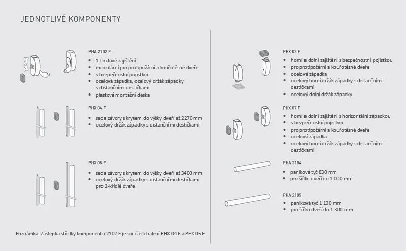 PHX 04 F - set závory s krytem pro křídlo dveří s výškou do 2 270 mm