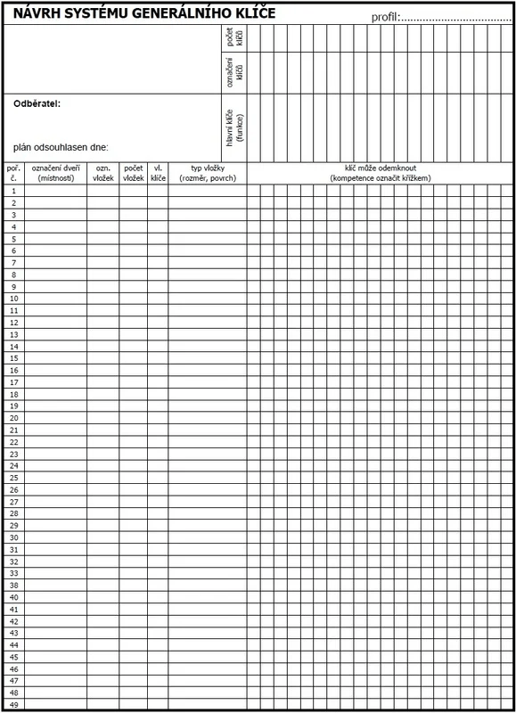 SYSTÉM GENERÁLNÍHO KLÍČE - UZAMYKACÍ SYSTÉM