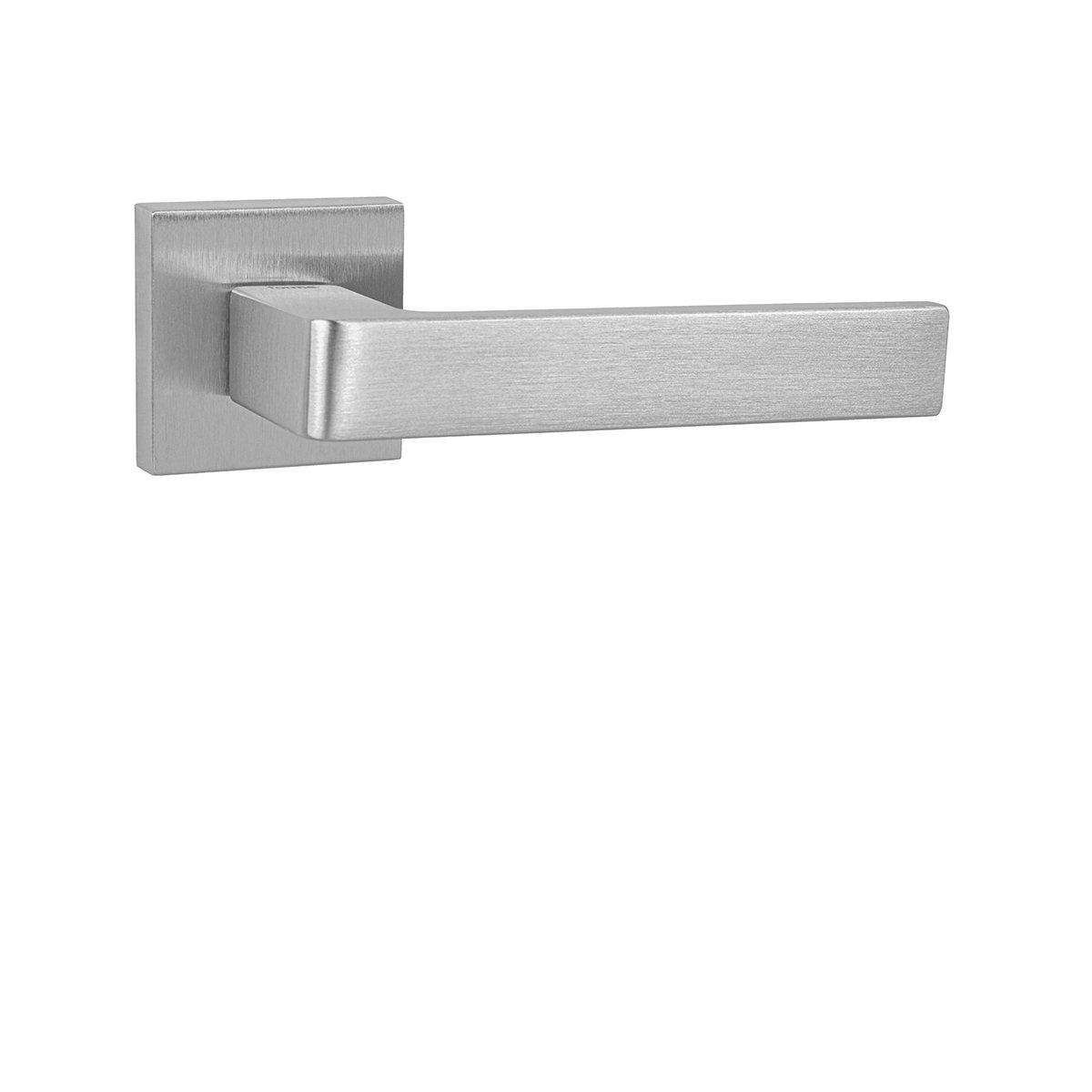 Rozetová klika na interiérové ​​dveře s hranatou rozetou je vyrobena z materiálů vysoké kvality - zamak a je povrchově upravena.