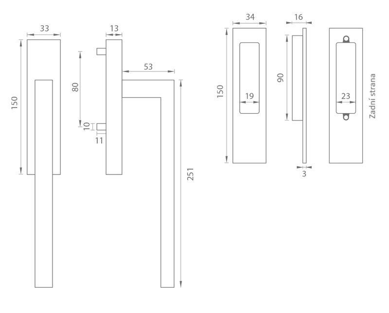 Rozměry obdelníkové rozety: 33 mm x 150 mm