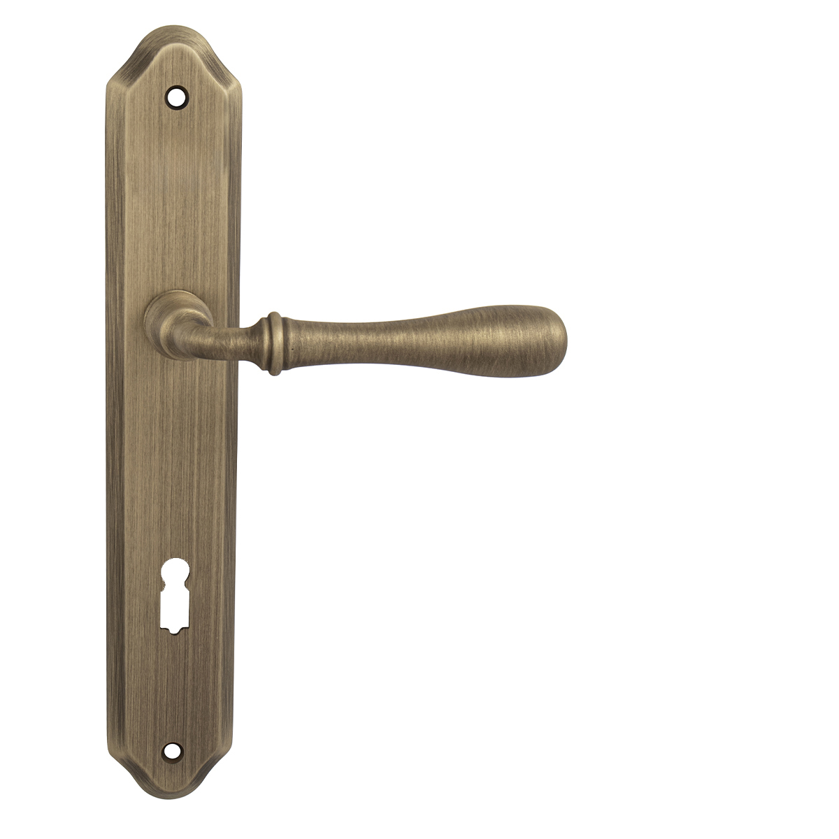 Štítová klika na interiérové dveře s rustikálním štítem je vyrobena z materiálů vysoké kvality - mosaz a je povrchově upravena. Rustikální štít má rozměry 43 mm x 252 mm.
