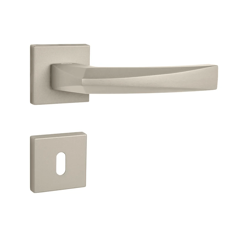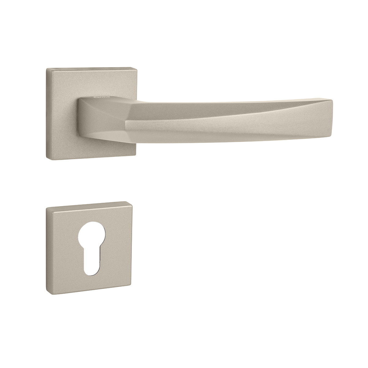 Rozetová klika na interiérové ​​dveře s hranatou rozetou je vyrobena z materiálů vysoké kvality - zamak a je povrchově upravena.