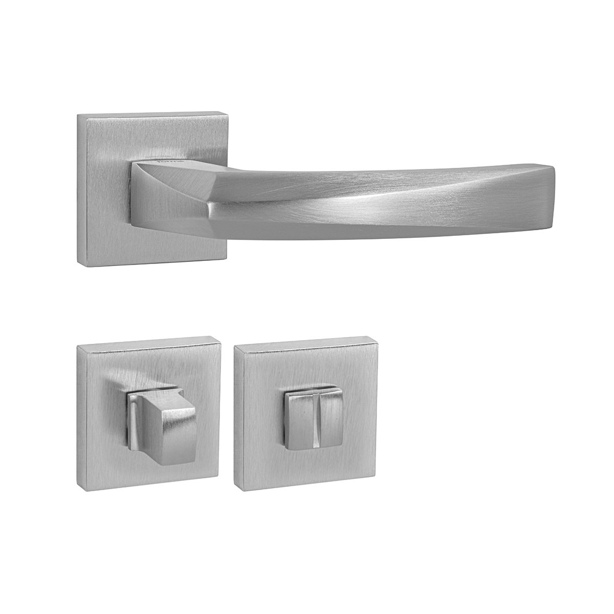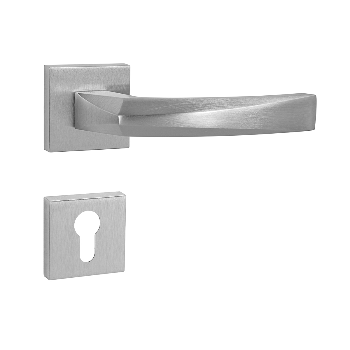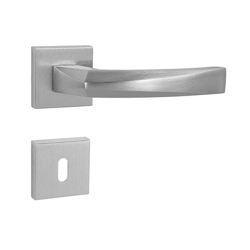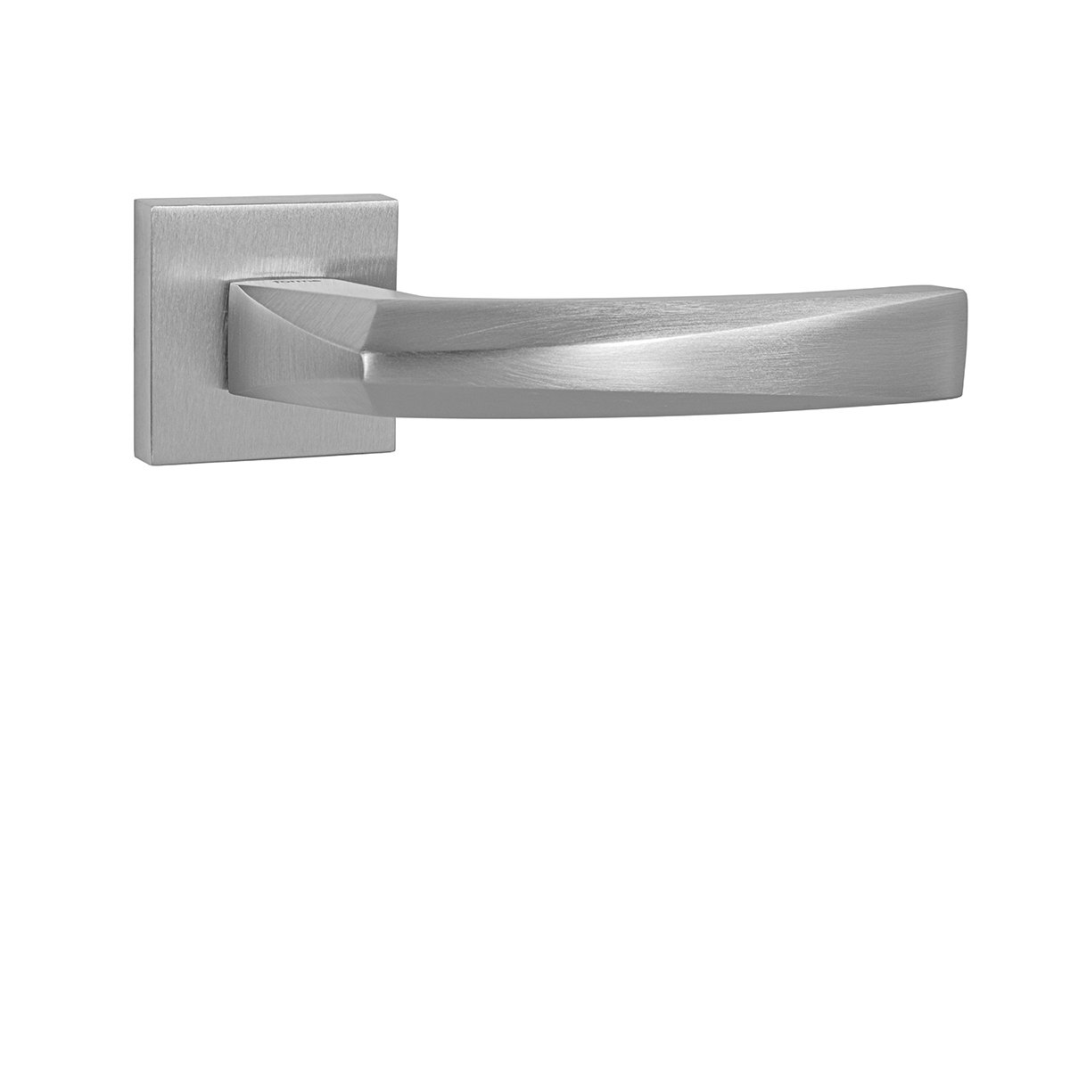 Rozetová klika na interiérové dveře s hranatou rozetou je vyrobená z materiálů vysoké kvality – zamak a je povrchově upravená.