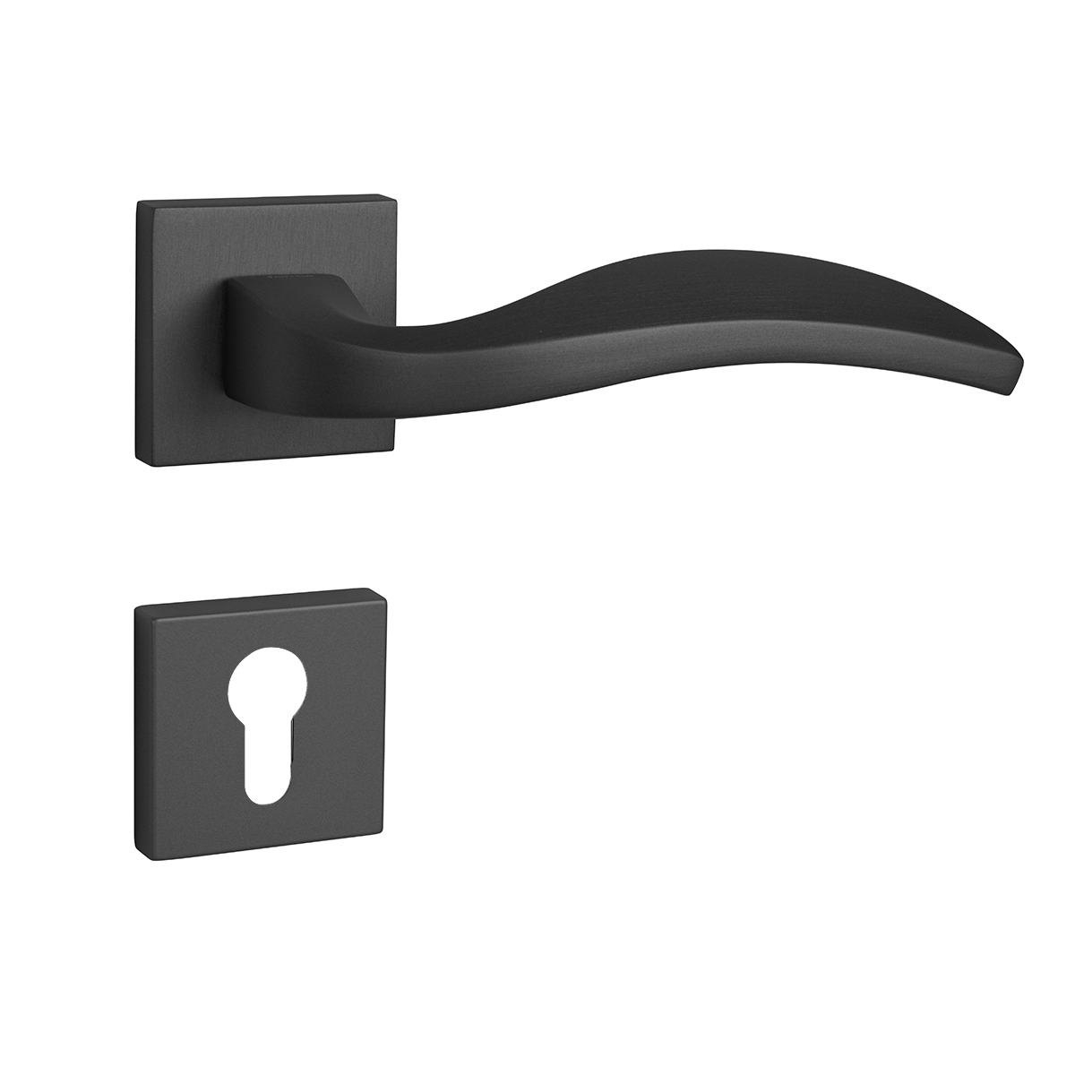 Rozetová klika na interiérové dveře s hranatou rozetou je vyrobena z materiálů vysoké kvality - zamak a je povrchově upravena.