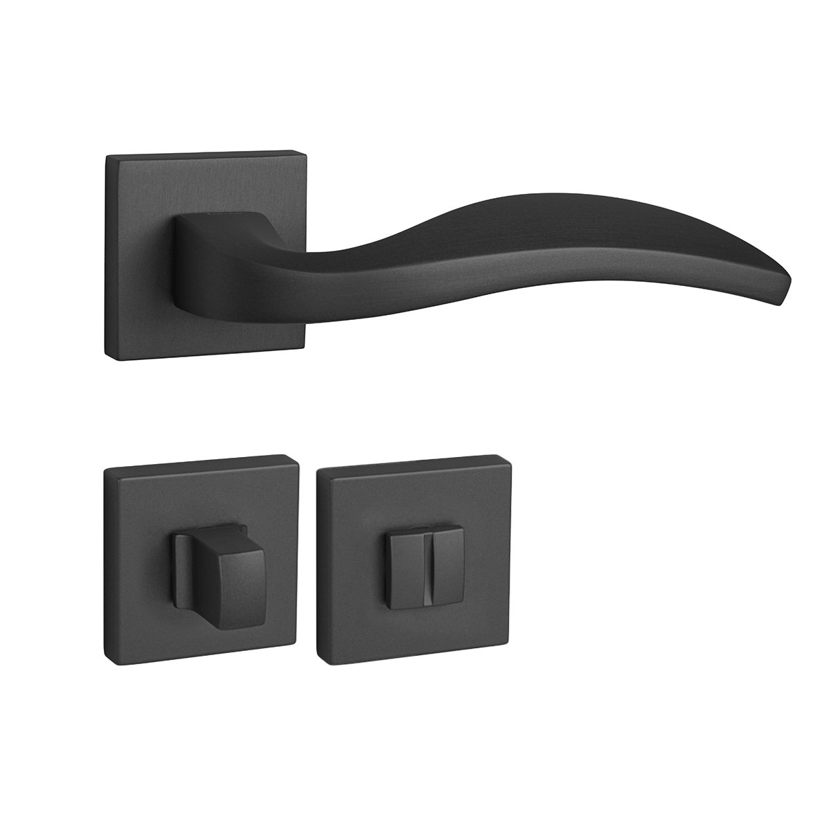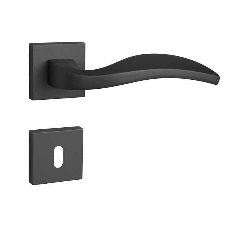 Rozetová klika na interiérové ​​dveře s hranatou rozetou je vyrobena z materiálů vysoké kvality - zamak a je povrchově upravena.