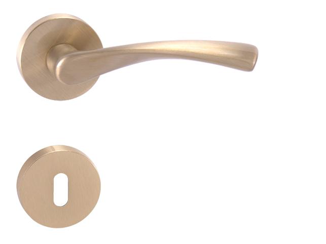 Rozetová klika na interiérové dveře s kulatou rozetou je vyrobena z materiálů vysoké kvality - mosaz / zamak a je povrchově upravena. Rozeta má průměr 50 mm a tloušťku 10 mm.
