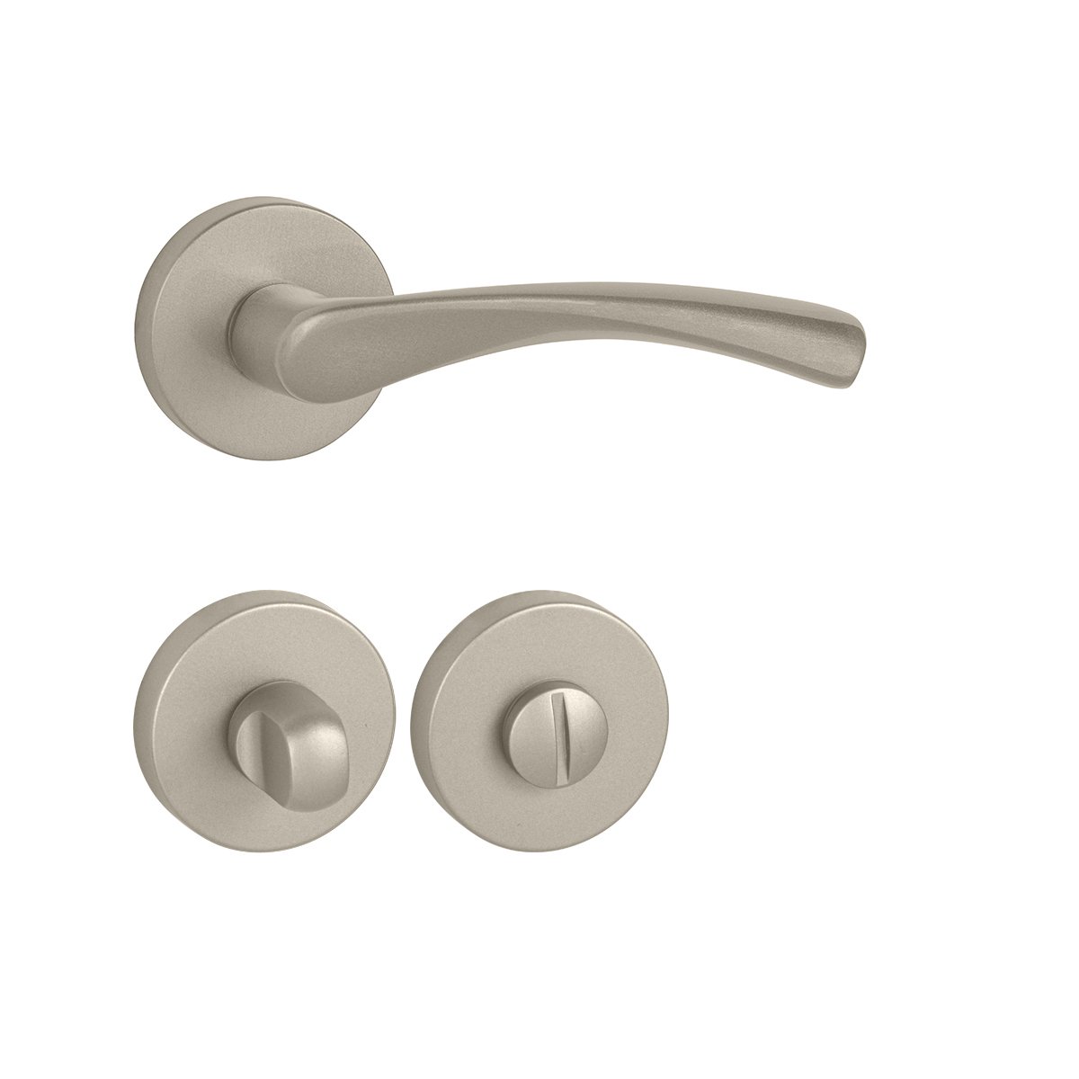 Rozetová klika na interiérové dveře s kulatou rozetou je vyrobena z materiálů vysoké kvality - mosaz / zamak a je povrchově upravena. Rozeta má průměr 50 mm a tloušťku 10 mm.