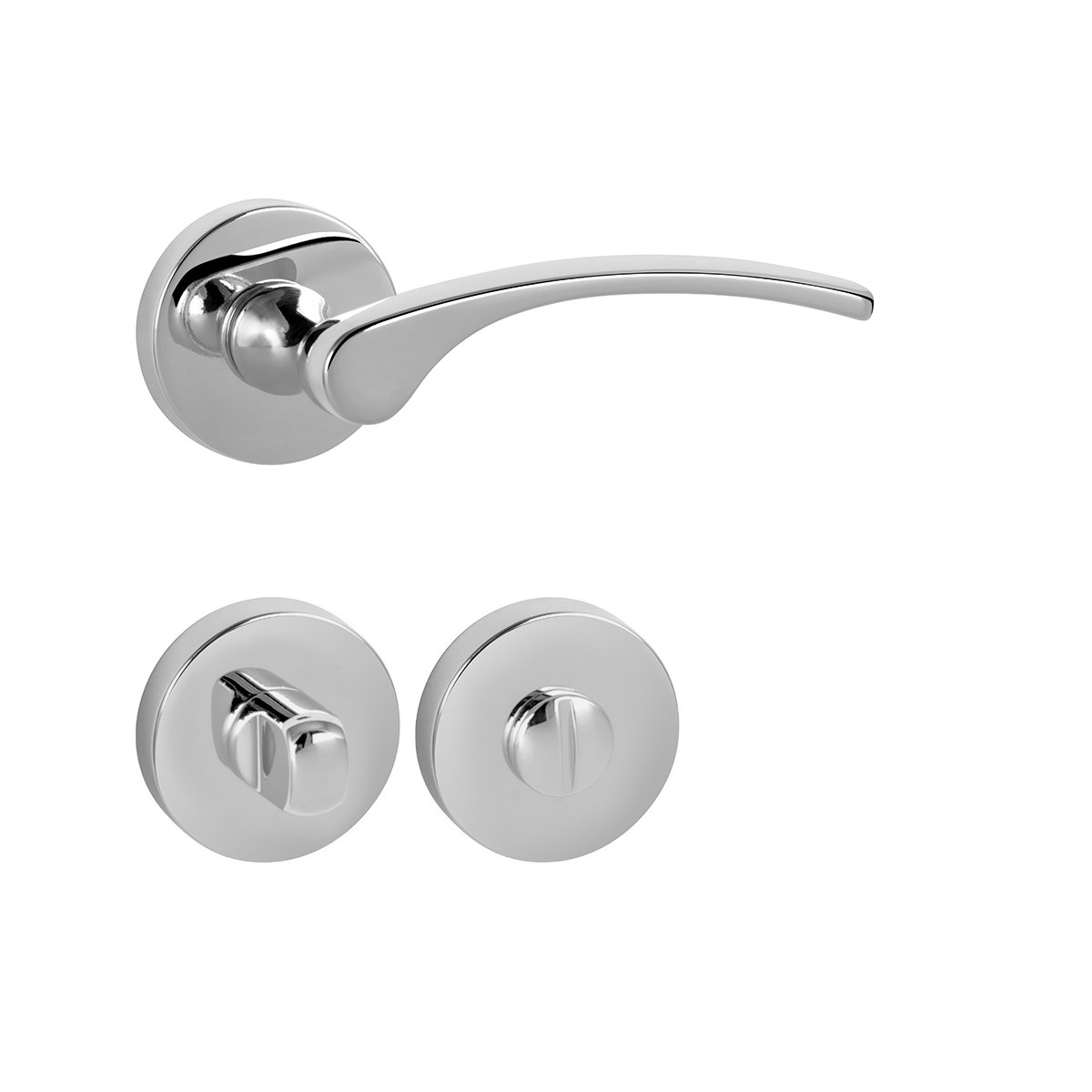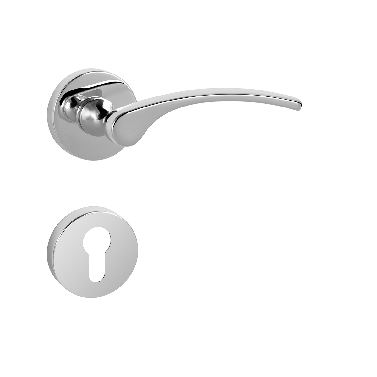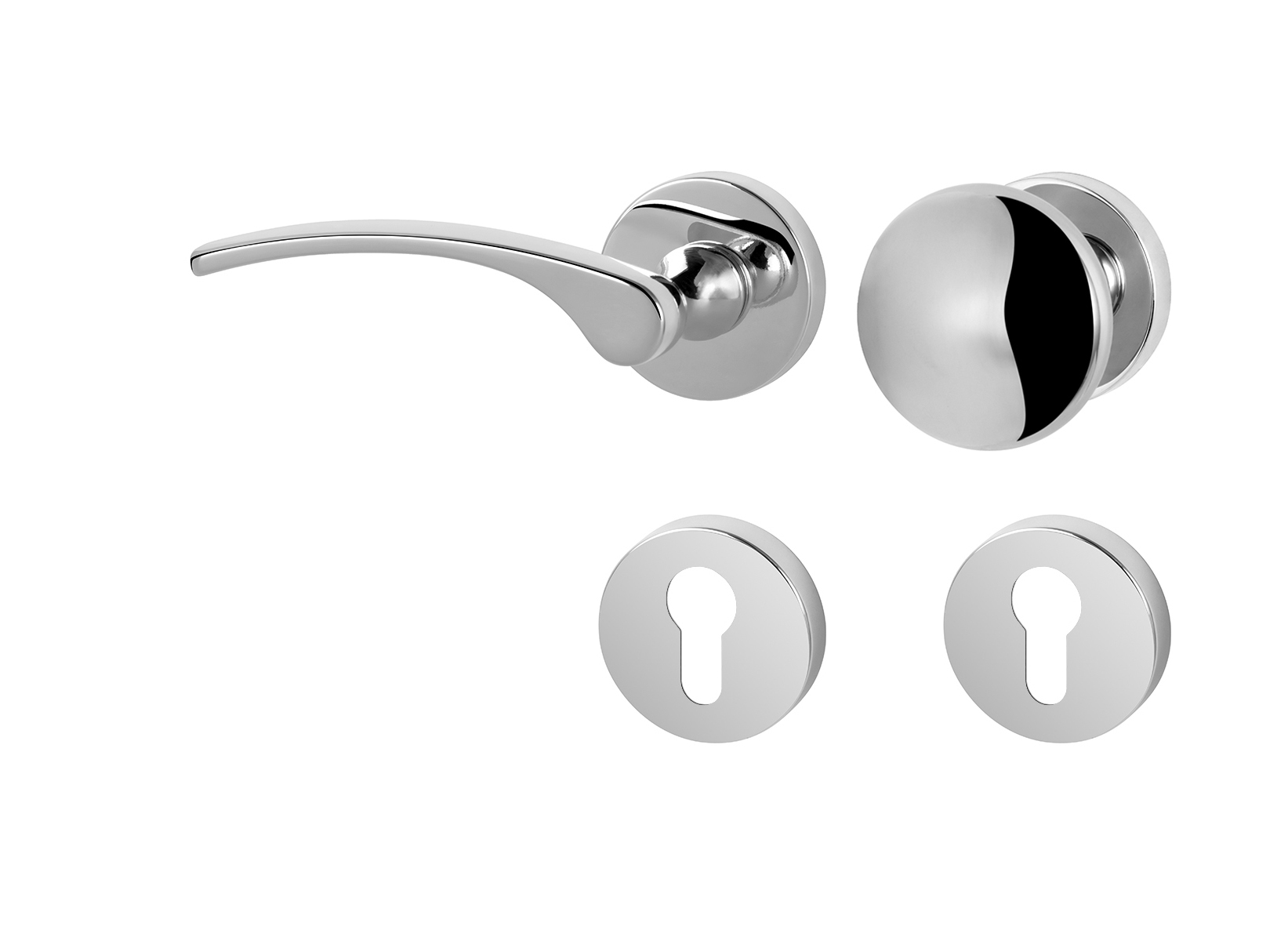 Rozetová klika na interiérové dveře s kulatou rozetou je vyrobena z materiálů vysoké kvality - zamak a je povrchově upravena. Rozeta má průměr 50 mm a tloušťku 10 mm.