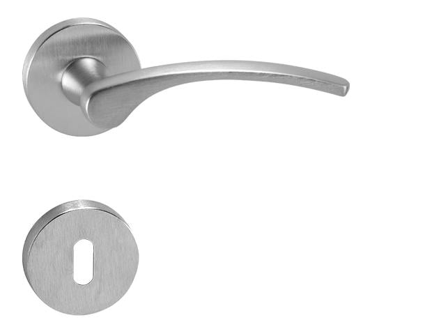 Rozetová klika na interiérové dveře s kulatou rozetou je vyrobena z materiálů vysoké kvality - zamak a je povrchově upravena. Rozeta má průměr 50 mm a tloušťku 10 mm.