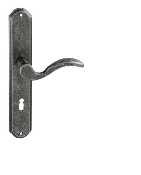 Štítová klika na interiérové dveře s rustikálním štítem je vyrobena z materiálů vysoké kvality - zamak a je povrchově upravena. Rustikální štít má rozměry 44 mm x 250 mm.
