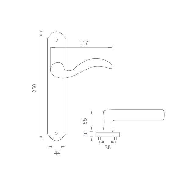 Štítová klika na interiérové ​​dveře s rustikálním štítem je vyrobena z materiálů vysoké kvality - zamak a je povrchově upravena. Rustikální štít má rozměry 44 mm x 250 mm.