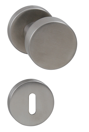 Dveřní VYOSENÁ koule na kulaté rozetě je vyrobena z vysoce kvalitní nerezavějící oceli, známé jako nerez a je povrchově upravena.