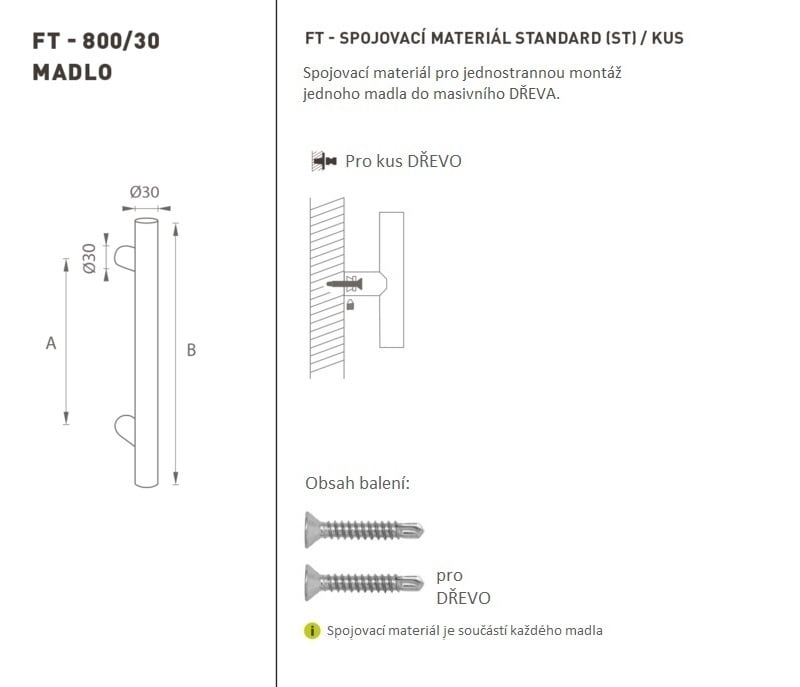 Madlo na dveře je vyrobeno z vysoce kvalitní nerezavějící oceli, známé jako nerez a je povrchově upraveno. Profil madla 30 mm. Uvedená cena je za 1 kus. K madlům na dveře doporučujeme zakoupit i spojovací materiál podle požadovaného typu materiálu.