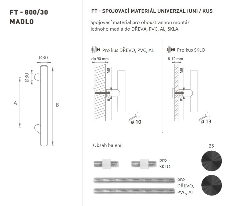 FT - MADLO kód K00 Ø 30 mm UN ks BS - Černá matná (1/4)