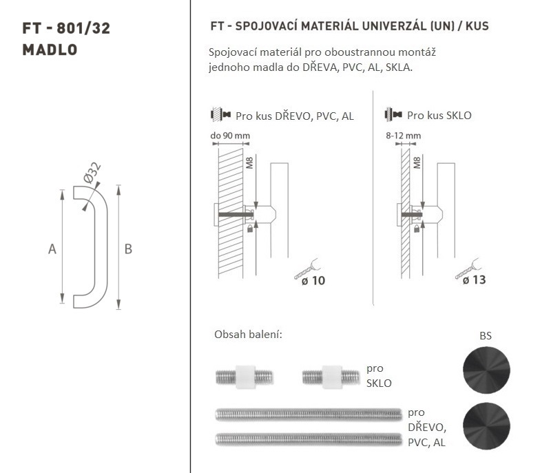FT - MADLO kód K01 Ø 32 mm UN ks BS - Černá matná (1/4)