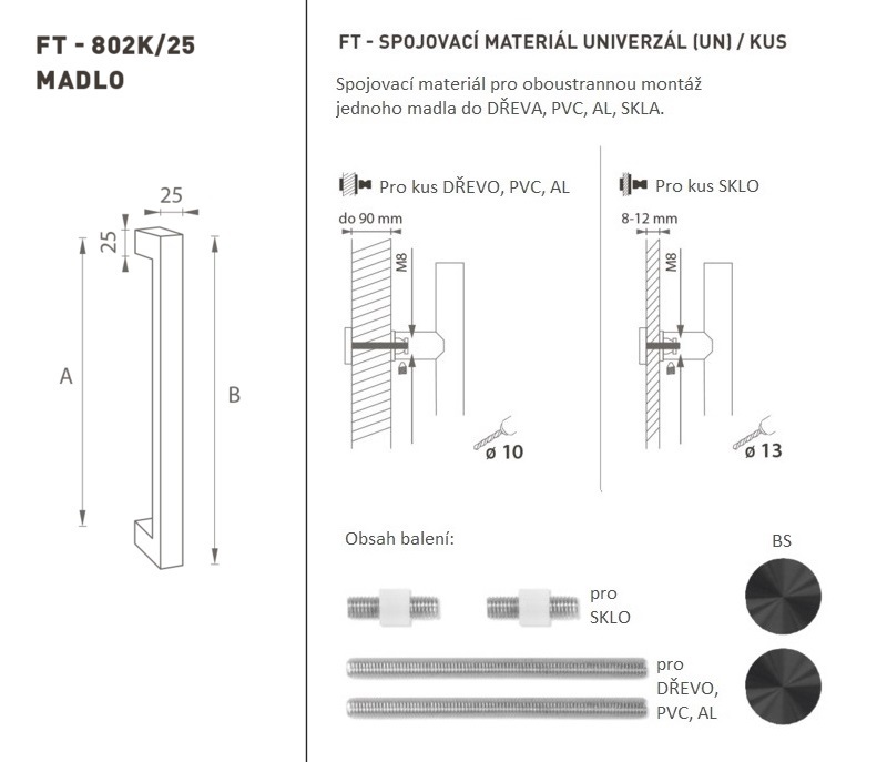 FT - MADLO kód K02 Ø 25 mm UN ks BS - Černá matná (1/4)