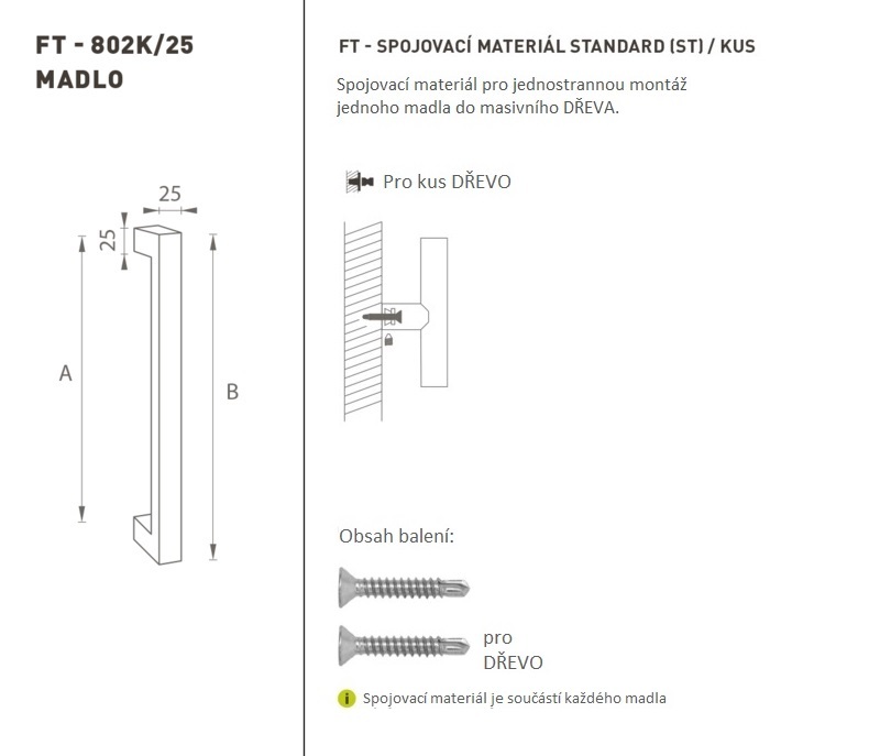 FT - MADLO kód K02K 25x25 mm ST ks BN - Broušená nerez (1/4)