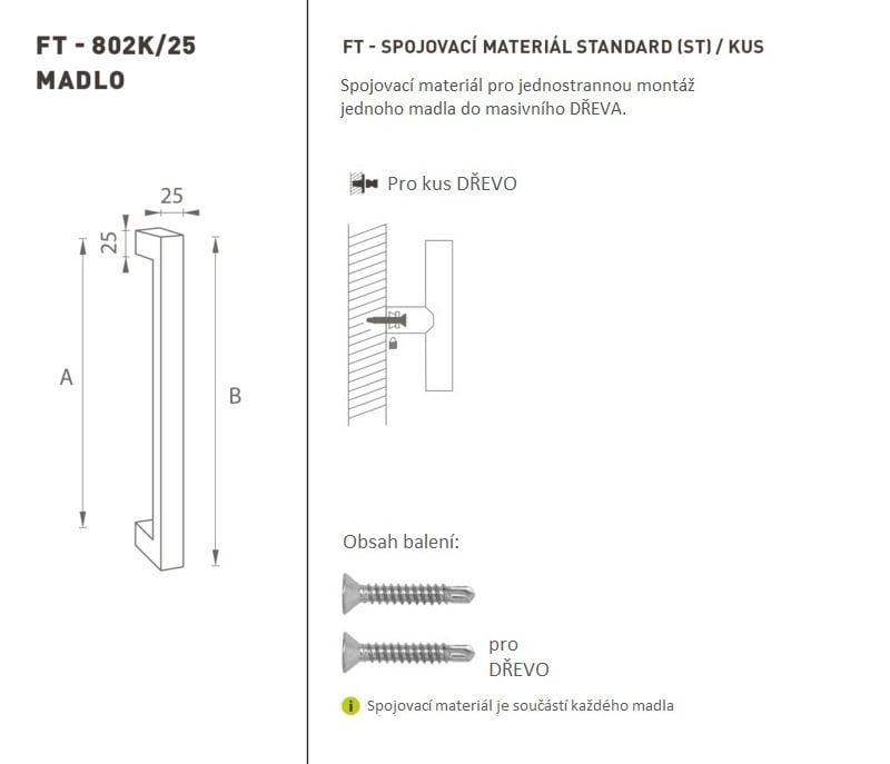 FT - MADLO kód K02K 25x25 mm ST ks BS - Černá matná (2/3)