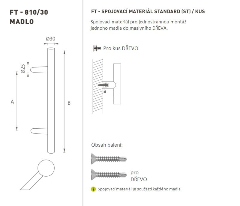 FT - MADLO kód K10 Ø 30 mm ST ks WS - Bílá matná (1/3)