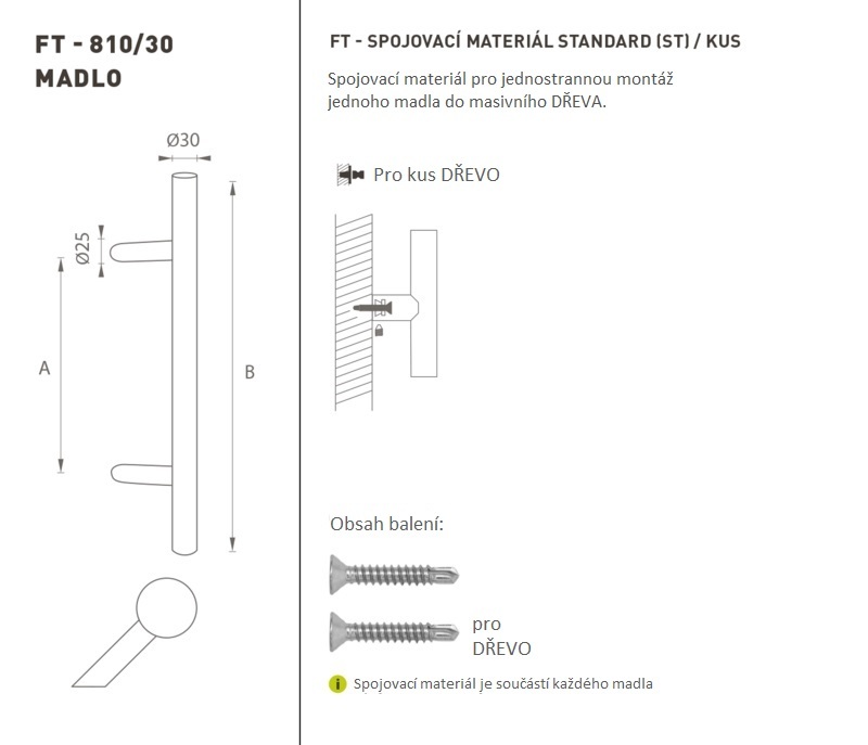 Madlo na dveře je vyrobeno z vysoce kvalitní nerezavějící oceli, známé jako nerez a je povrchově upraveno. Madlo má průměr 30 mm. Uvedená cena je za 1 kus. K madlům na dveře doporučujeme zakoupit i spojovací materiál podle požadovaného typu materiálu.