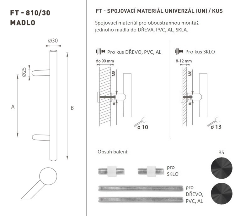 FT - MADLO kód K10 Ø 30 mm UN ks BS - Černá matná (2/4)