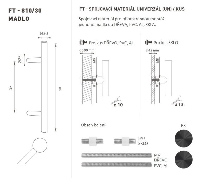 FT - MADLO kód K10 Ø 30 mm UN ks BS - Černá matná (1/2)