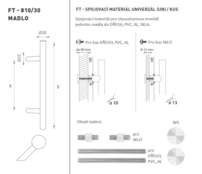 FT - MADLO kód K10 Ø 30 mm UN ks WS - Bílá matná - Ø 30 mm - 210 mm - 300 mm