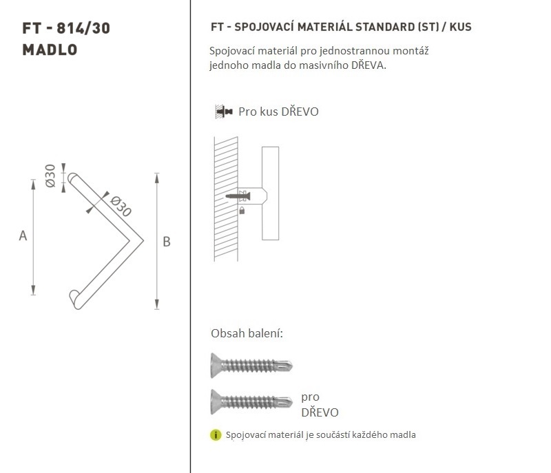 FT - MADLO kód K14 Ø 30 mm ST ks BN - Broušená nerez (1/6)