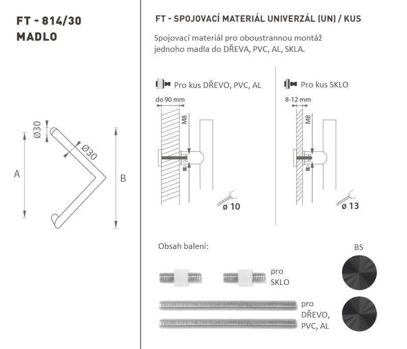 FT - MADLO kód K14 Ø 30 mm UN ks BS - Černá matná (1/4)