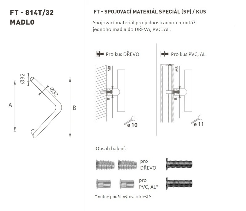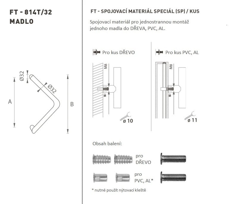 Madlo na dveře je vyrobeno z vysoce kvalitní nerezavějící oceli, známé jako nerez a je povrchově upraveno. Profil madla je 32 mm. Sada SPECIÁL (SP) obsahuje spojovací materiál pro jednostrannou montáž jednoho madla do dřeva, PVC, AL. Madlo s délkou 1600 mm má 3 úchyty.