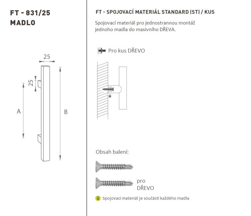 FT - MADLO kód K31 25x25 mm ST ks WS - Bílá matná - 210 mm - 25x25 mm - 400 mm