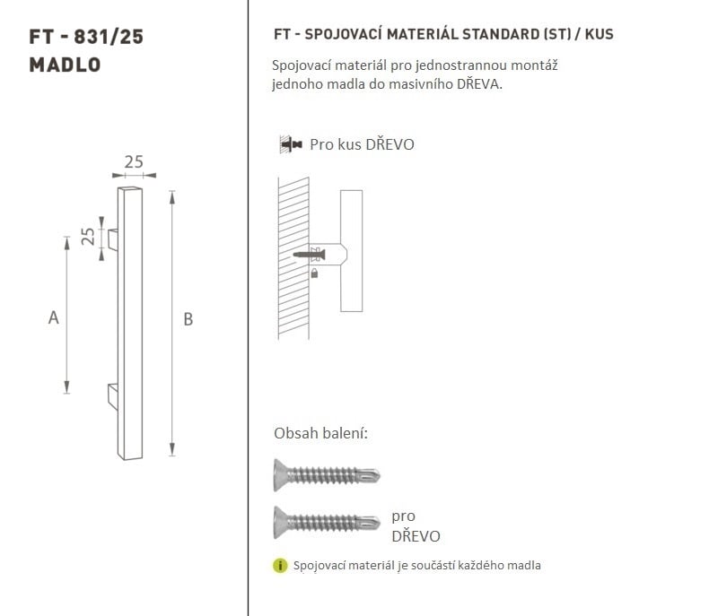 Madlo na dveře je vyrobeno z vysoce kvalitní nerezavějící oceli, známé jako nerez a je povrchově upraveno. Profil madla 25 mm x 25 mm. Uvedená cena je za 1 kus. K madlům na dveře doporučujeme zakoupit i spojovací materiál podle požadovaného typu materiálu.