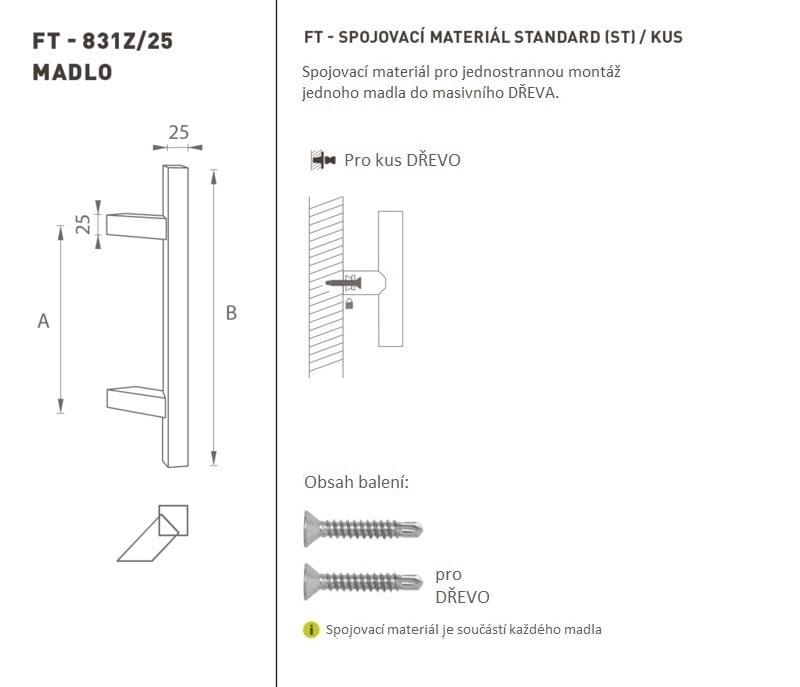 Madlo na dveře je vyrobeno z vysoce kvalitní nerezavějící oceli, známé jako nerez a je povrchově upraveno. Profil madla 25 mm x 25 mm. Uvedená cena je za 1 kus. K madlům na dveře doporučujeme zakoupit i spojovací materiál podle požadovaného typu materiálu.