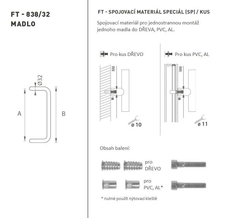 Madlo na dveře je vyrobeno z vysoce kvalitní nerezavějící oceli, známé jako nerez a je povrchově upraveno. Profil madla je 32 mm. Sada SPECIÁL (SP) obsahuje spojovací materiál pro jednostrannou montáž jednoho madla do dřeva, PVC, AL. Madlo s délkou 1600 mm má 3 úchyty.